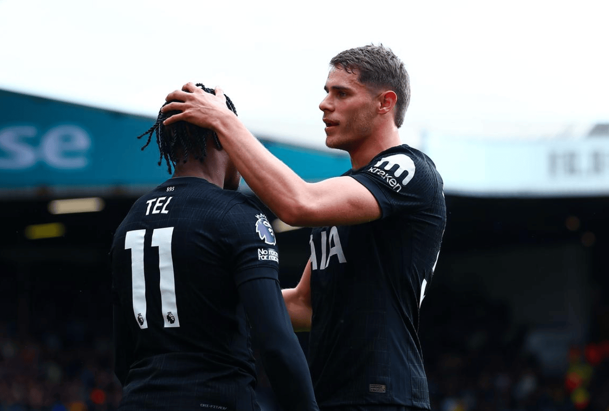 热刺排出了4231阵型。特尔顶在最前面。奥多贝尔、哈维-西蒙斯和库杜斯的进攻组合联袂出击。本坦库尔和帕利尼亚组成双后腰。乌多基、范德芬、罗梅罗和波罗4后卫首发出战。维卡里奥担任首发门将。里沙立松和布伦南-约翰逊坐在替补席待命。
